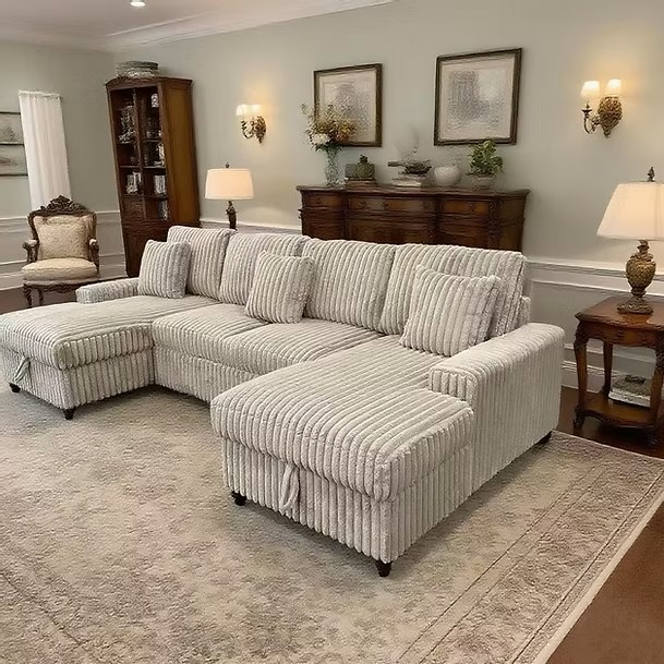 Sectional with pull out bed and Storage. Also include USB and Type C charging ports